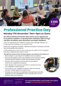 Join us for a Professional Practice Day – a rich, fully participatory training experience designed to deepen your confidence, versatility, and skill in managing real-life mediation scenarios.